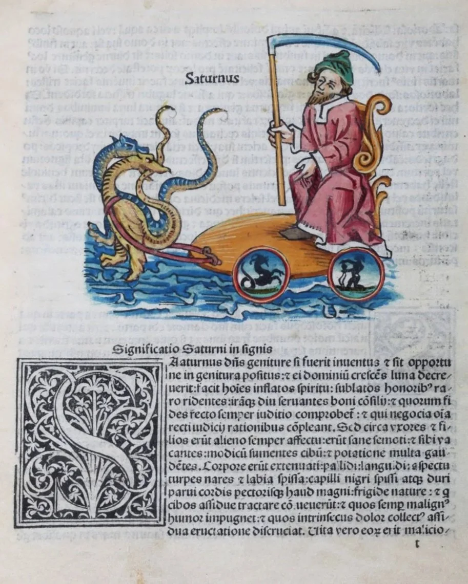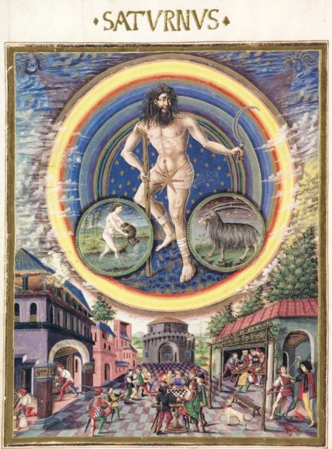 Saturno, o Grande Maléfico, é o planeta mais distante do Sol (no contexto dos 7 planetas clássicos). A sua lentidão e frieza simbolizam a passagem do tempo e os limites da realidade. Do isolamento, da responsabilidade, da maturidade e do trabalho árduo. E ainda, o medo e o obscuro (daquilo que está para além dos seus limites, enquanto último planeta visível). Se Júpiter expande e promete, Saturno exige contrai. Aquele que se manifesta através da restrição, da disciplina e da experiência.